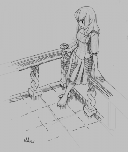 April 12 2021, girl leaning against railing, playing with the new 2p-perspective assistant